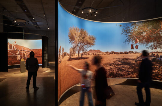 © SMÄKTechnisch anspruchsvoll ist auch die Ortung innerhalb der Sonderschau. Die eingesetzte Ultra-Breitband-Ortung (kurz UWB-Ortung für engl. Ultra-Wideband), die bisher vor allem in der Industrie und dort sowohl für Kommunikations- als auch für Ortungszwecke eingesetzt wurde, ermöglicht eine zentimetergenaue Lokalisierung der Besuchenden im Raum und macht allein schon das Erkunden der Klangwelten innerhalb der Ausstellung zu einem Erlebnis. Nach dem Druck der beeindruckenden Fotopanoramen und dem Ausstellungsbau wurde vor allem an der Positionierung der professionell eingesprochenen Texte in der Ausstellung gefeilt. Was funktioniert für die Besuchenden? Welche Textebenen werden an welchen Positionen ausgelöst? Was fördert eine intuitive Erkundung der Klanglandschaft, was könnte eher verwirren? Herausgekommen ist ein stimmiges Gesamtkonzept, das geeignet ist, das Publikum für die Dauer des Ausstellungsbesuches tatsächlich mit zu den Grabungsarbeiten nach Naga zu nehmen.