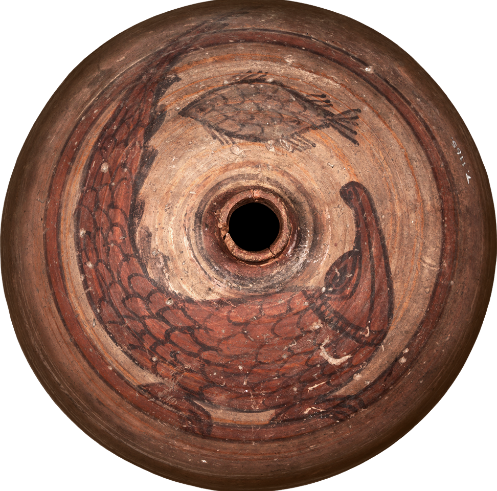 Meroitic pottery provides a good example for the land’s diverse culture, spanning the divide between Europe and Africa. There are Hellenistic pot shapes and decorative techniques (such as “barbotine” ware), painted decoration in Egyptian motifs such as hieroglyphs and typically African pottery types such as the large, big-bellied jars with a small opening, used to store water and keep it cool.