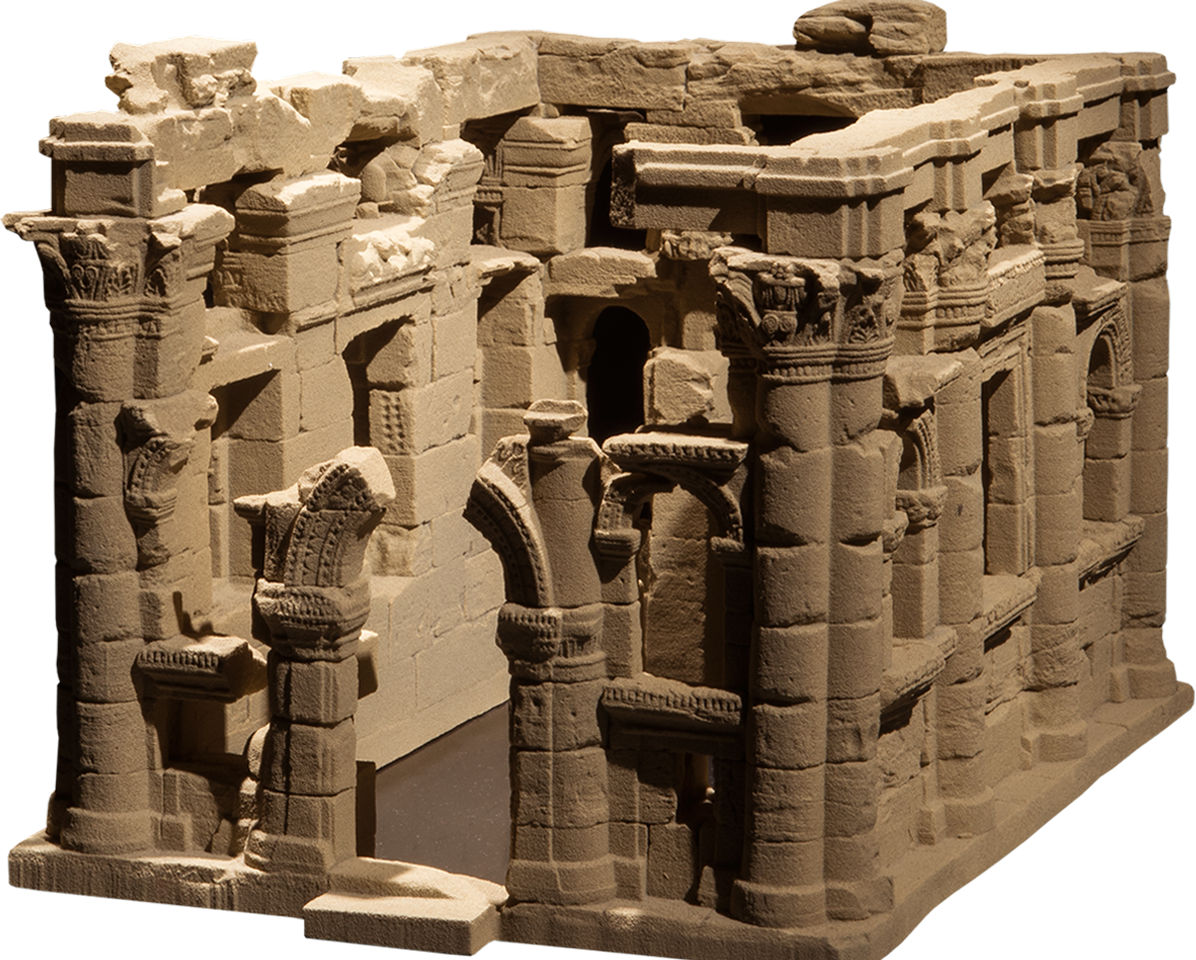 This plastic model of a small sanctuary at 1:30 scale embodies the museum’s excavations in the Sudan. With a sustainable restoration programme and the use of innovative technology such as a 3-D structured light scanner and photography drones, the Naga Project sets the bar for modern archaeological excavations. When restoring the Chapel of Hathor, severely-damaged blocks were replaced by replicas milled using the data from 3-D scans.