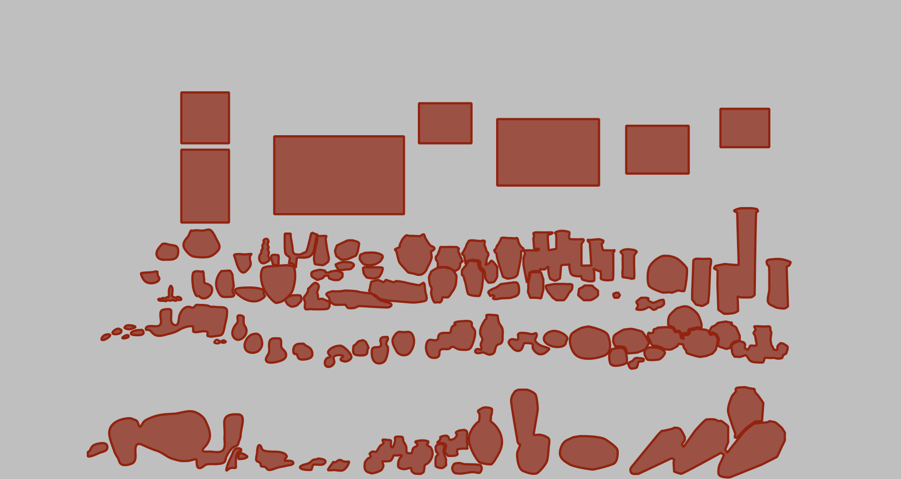 In the Predynastic Period, localised cultures encompassing some of the first settlements appear throughout the land. Next to petroglyphs in the desert, pottery is the main medium for artistic expression. Tools and weapons made of flint, jewellery made from gemstones and ivory, cosmetic palettes and the first examples of sculpture all appear as grave goods; stone vessels of the finest quality illustrate the high level of stoneworking technology.