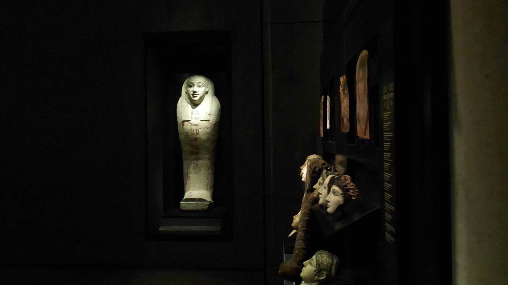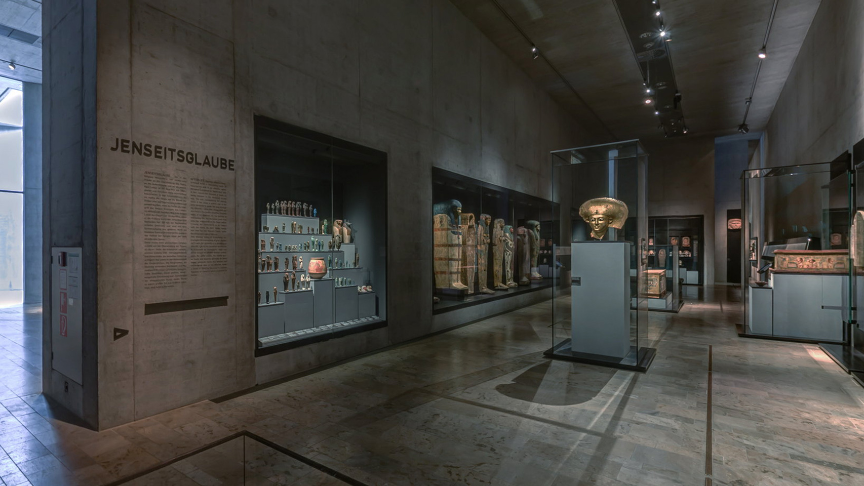 Die Vision einer glückseligen Ewigkeit erzählt von der Überwindung der Trauer, an deren Stelle die Gewissheit paradiesischen Lebens tritt. Hieroglyphentexte und Götterbilder der bemalten Holzsärge schildern das Leben in der Gemeinschaft der Unsterblichen. Die Sargmasken, die lebendig wirkenden Stuckköpfe und Mumienporträts zeigen glückliche, zukunftsfrohe Gesichter: Diese positive, erwartungsfrohe Einstellung zum Jenseits gibt der altägyptischen Kunst, deren Werke zu einem großen Teil aus Gräbern stammen, eine heitere Harmonie.