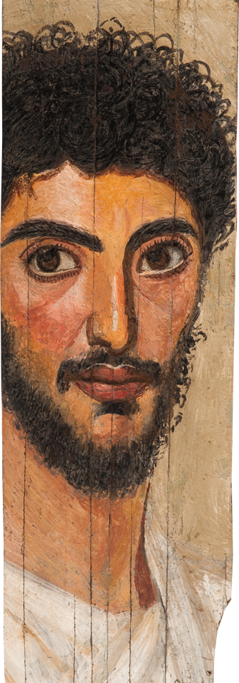 Die in Ägypten lebenden Römer - oft Angehörige des Militärs - statteten ihre Mumien mit zweidimensionalen, auf Holz gemalten Porträts aus, die in die äußerste Umhüllung der Mumie mit eingewickelt wurden. Sie tragen porträthafte Züge und zeigen die Verstorbenen mit der Haar- und Barttracht sowie dem Schmuck ihrer Zeit.