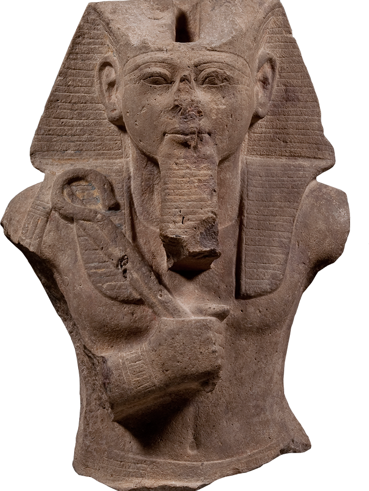 Dem ägyptischen König ist eine Doppelnatur zu eigen, er ist Mensch und Gott zugleich, was in den verschiedenen Bezeichnungen für den Herrscher zum Ausdruck kommt. Als Hohepriester jeden Tempels versorgt er die Götter mit Opfergaben, im Gegenzug erhält er stellvertretend den Lebensatem für die Menschheit. Pharao, das „große Haus“, ist der Garant der Maat, der göttlichen Weltordnung auf Erden. Als „Herr der Welt“ bezwingt er die Fremdländer und herrscht über Ägypten, dessen beide Teile Ober- und Unterägypten er durch seine Thronbesteigung stets aufs Neue vereint.