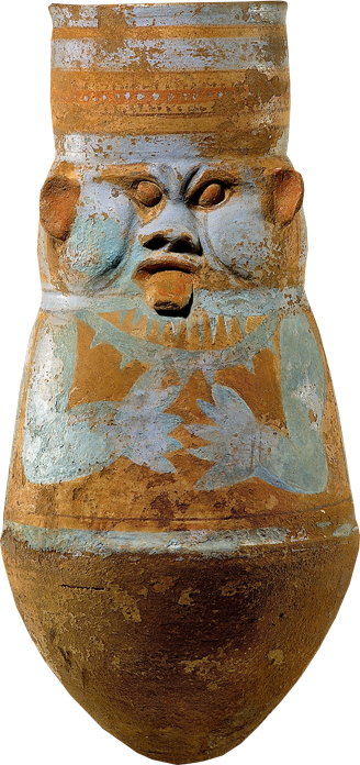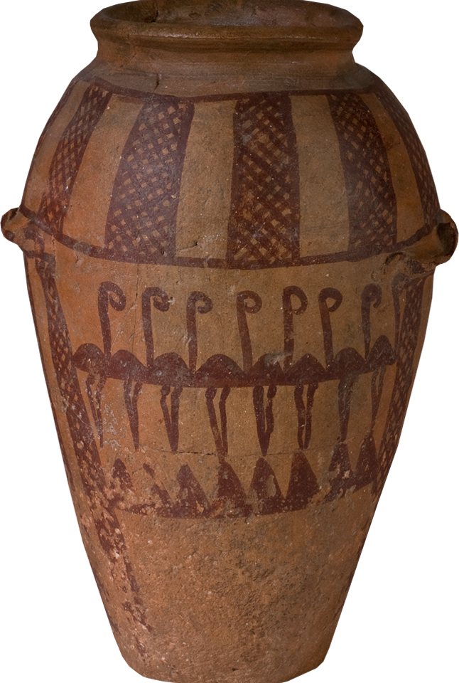 Immer wieder hat Ägypten über drei Jahrtausende Anregungen der Nachbarkulturen aufgegriffen und zu etwas Neuem, „typisch Ägyptischen“ verarbeitet oder technische Entwicklungen perfektioniert. In diesem ständigen Wechselspiel von Kontinuität und Innovation liegt die Besonderheit der altägyptischen Kultur bis weit in die christliche Zeit hinein. Das große Gefäß zeigt den zwergengestaltigen Bes, Schutzgott für Mutter und Kind, dessen Aussehen afrikanisch beeinflusst ist.